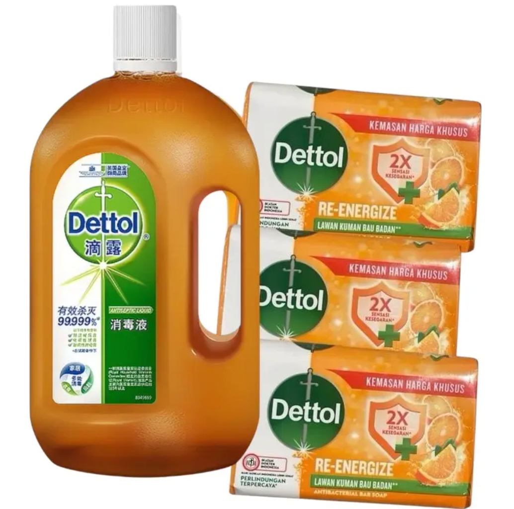 Dettol Antiseptic Disinfectant For first Aid, home cleaning, acne, 750 ml & 4 Soap Bars - Effective Surface Cleaner for Household Hygiene- Package May vary Healthcare